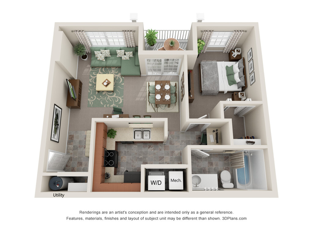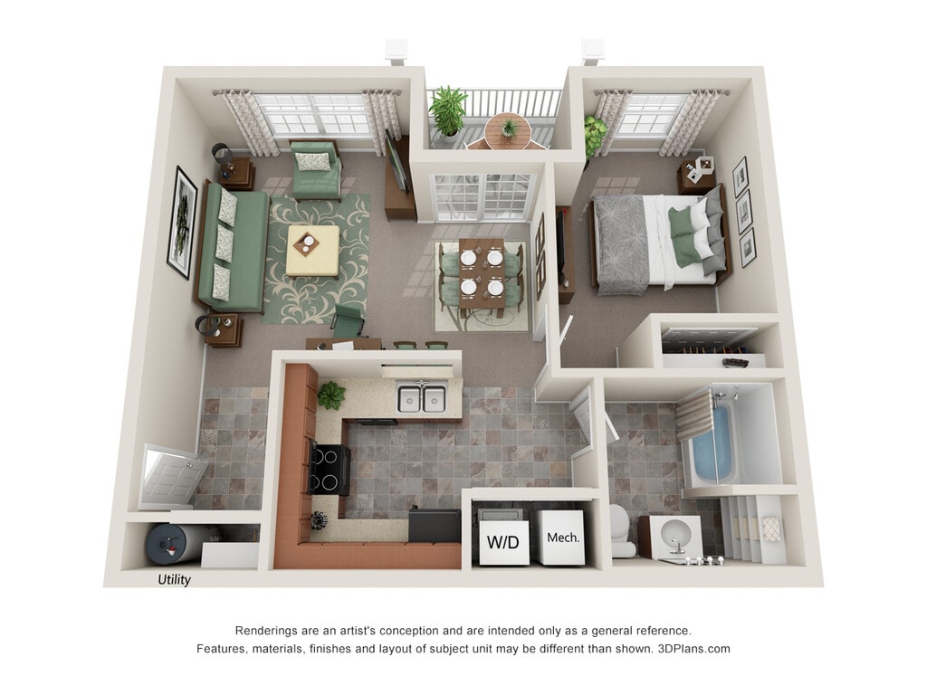 1 Bed, 1 Bath, 736 sq ftModel Gallery