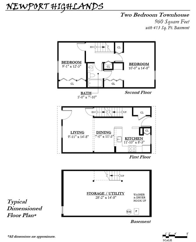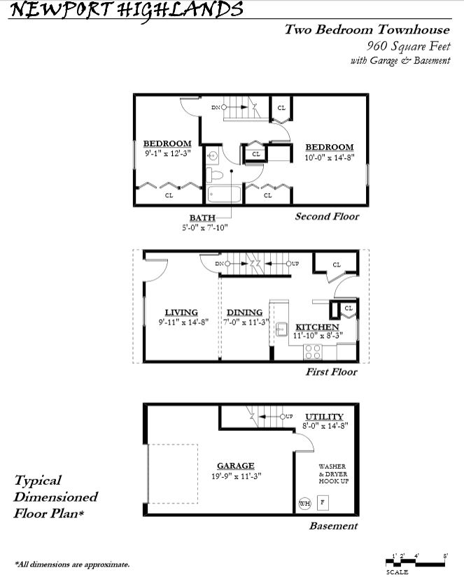 - Unique 960 s.f. townhouses w/ garage or basement w/extra 413 s.f.
