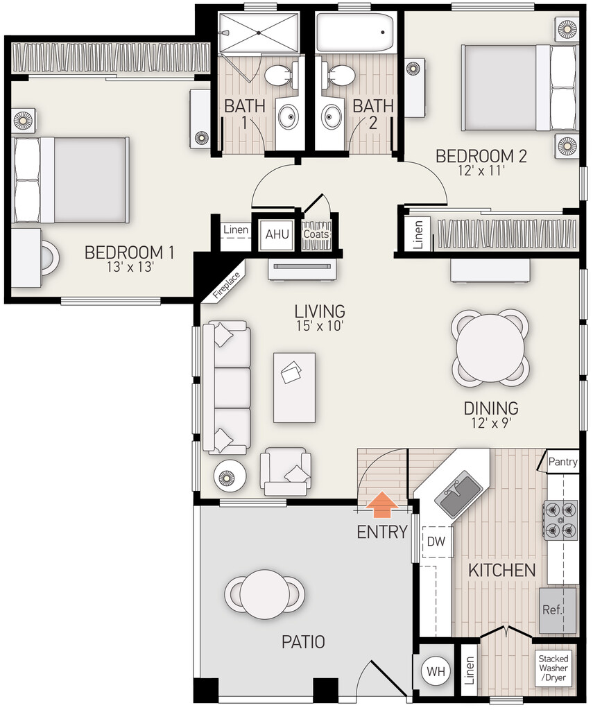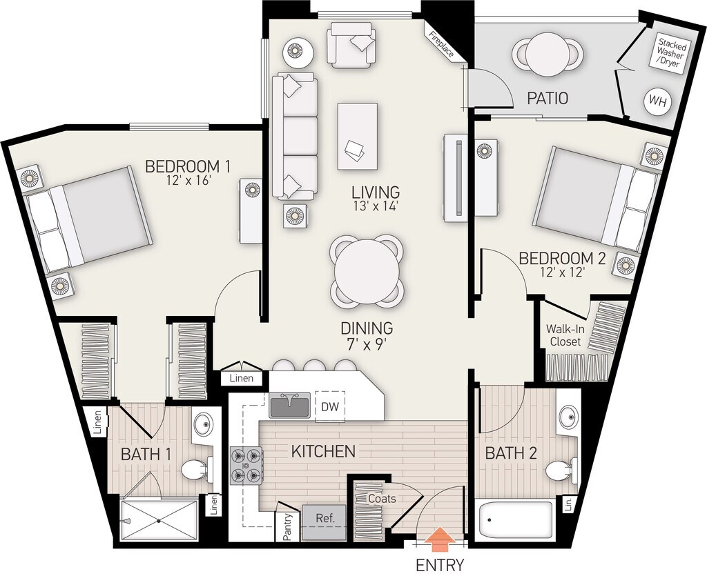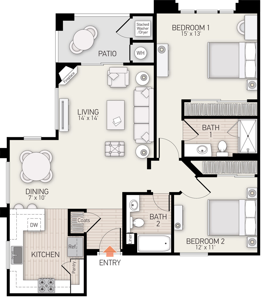 2 Beds, 2 Baths, 1070 sq ftAvailable NowCheapest 2 BedroomThis is the cheapest 2 Bedroom at this PropertyModel Gallery