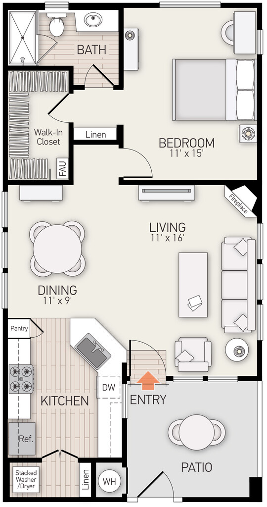 Apartment Model: Plan BFrom $3,5401 Bedroom, 1 Bath, 847 sq ftAvailable Now![]()