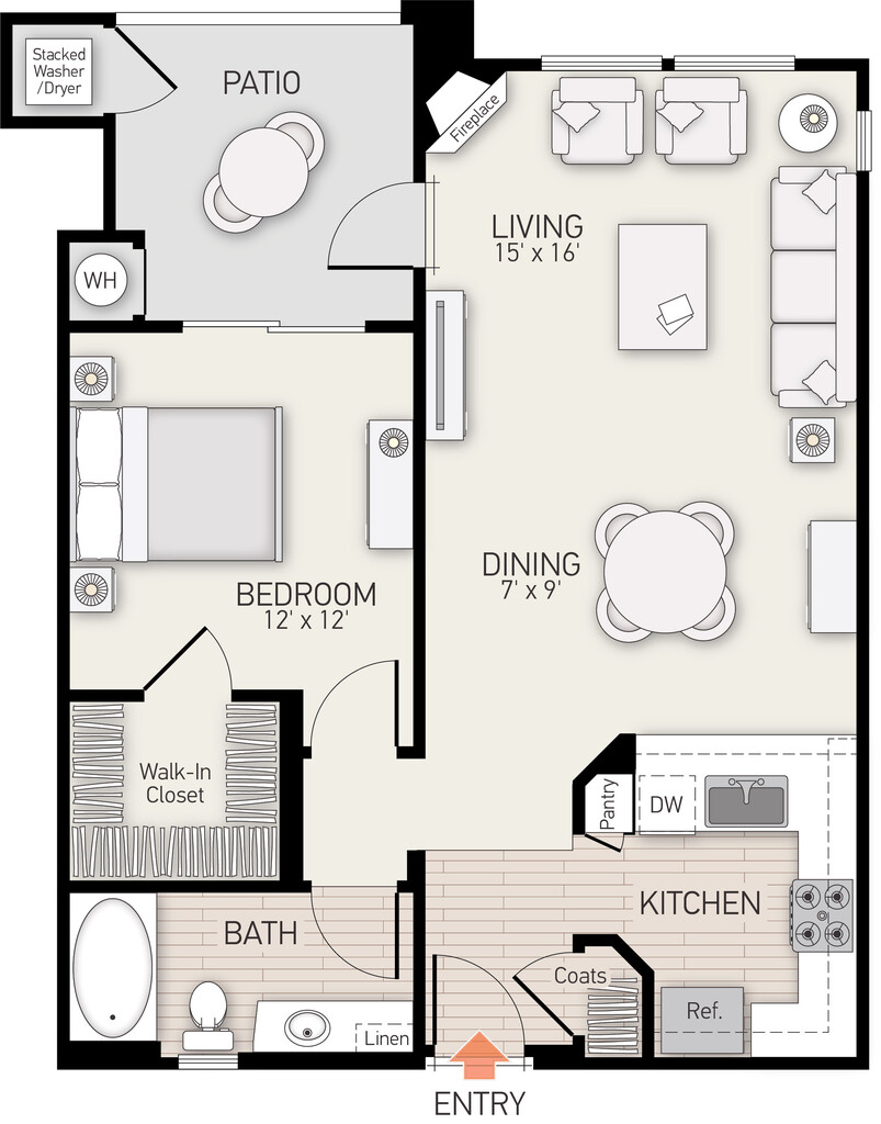 1 Bed, 1 Bath, 979 sq ftLargest 1 BedroomThis is the largest 1 Bedroom at this PropertyModel Gallery