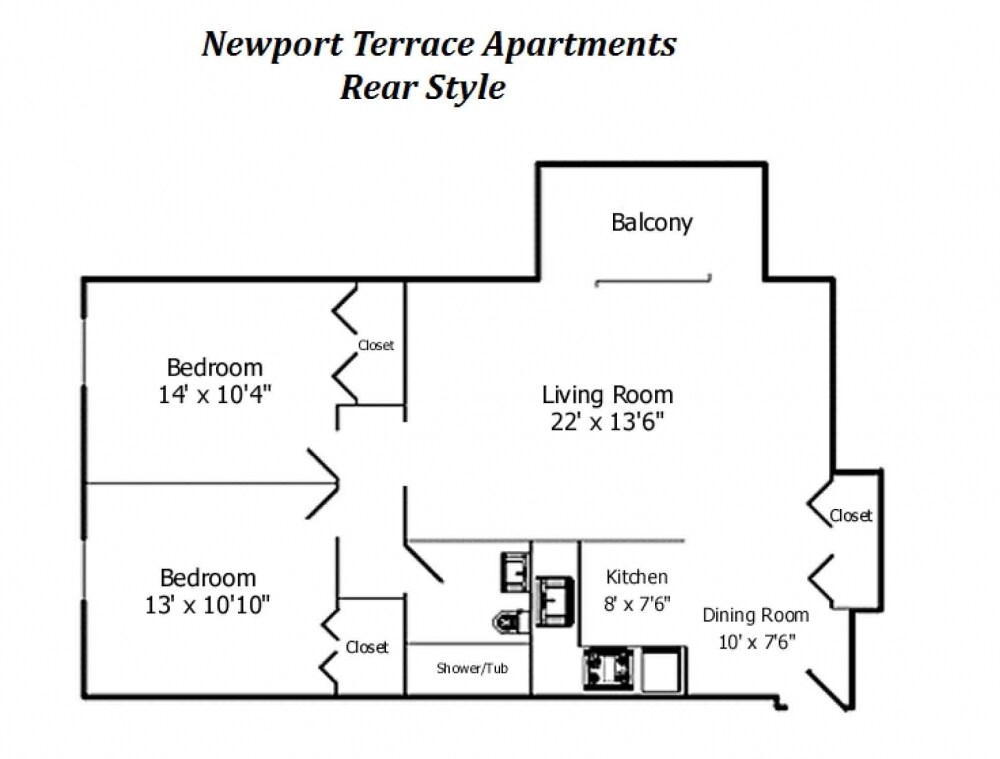 1 Bedroom to 2 Bedroom Apartments at Newport Terrace Apartments currently range from $1,379 to $1,449