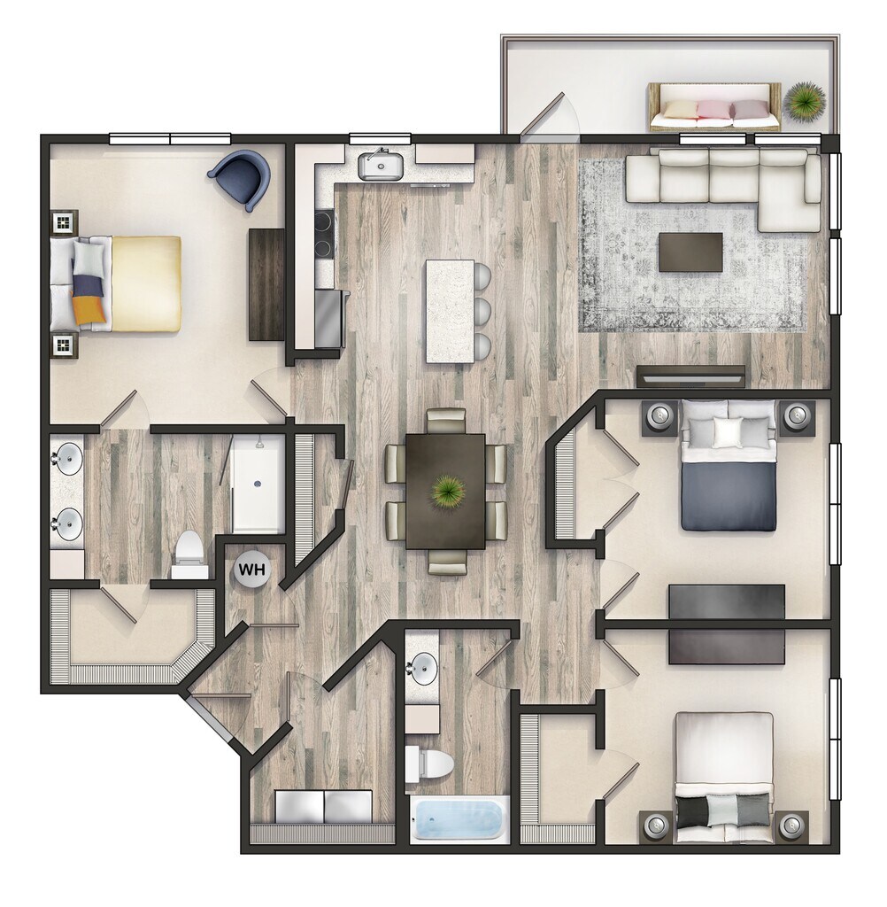 1 Bed, 1 Bath, 825 sq ftAvailable NowLargest 1 BedroomThis is the largest 1 Bedroom at this PropertyModel Gallery