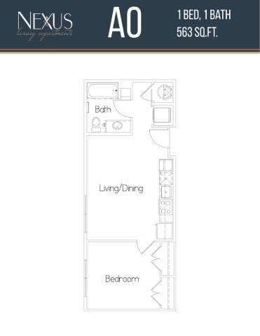 Apartment Model: A0From $1,5991 Bedroom, 1 Bath, 563 sq ftAvailable NowFloorplansPhotos![]()