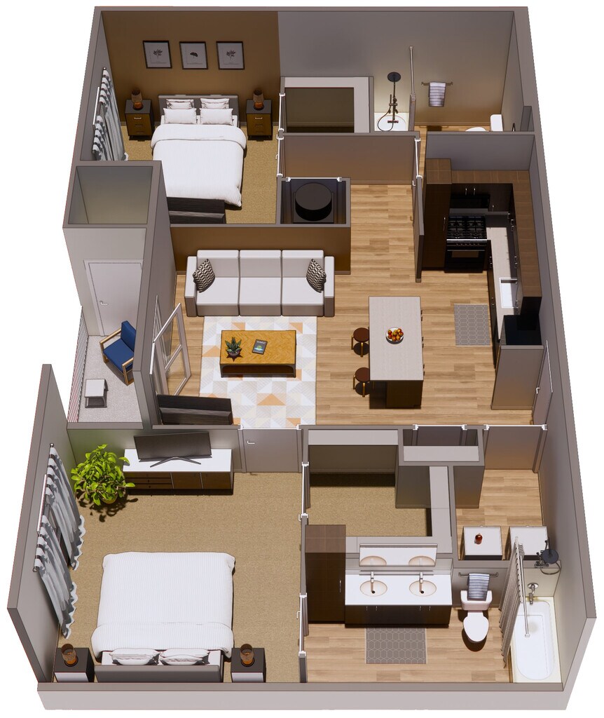 2 Beds, 2 Baths, up to 1053 sq ftAvailable NowAvailability Details