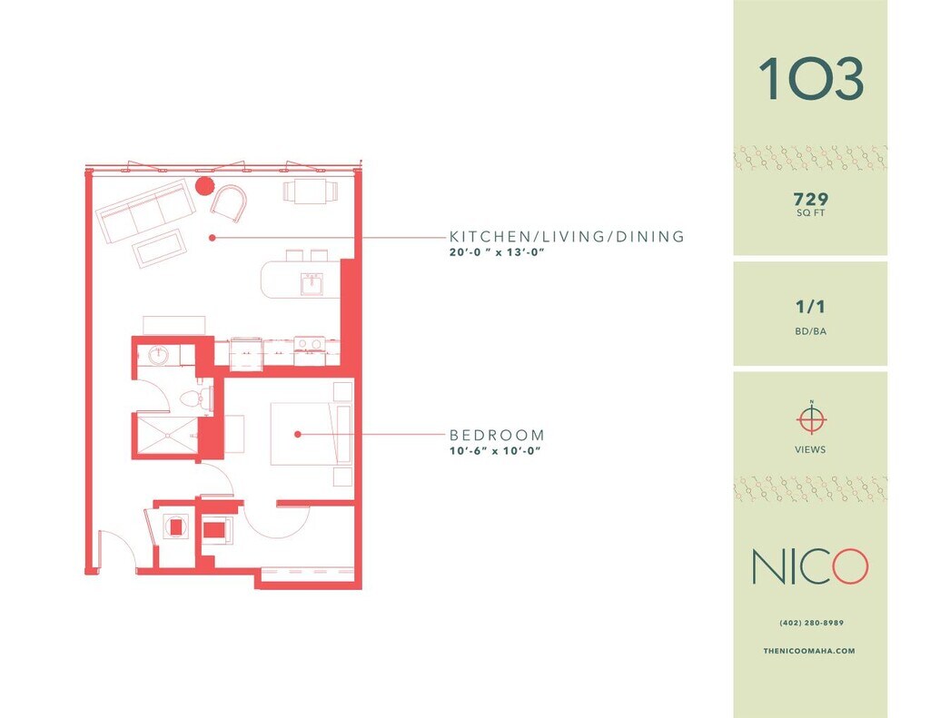 Nico offers 1 Bedroom apartments starting from $1,055 and having 664–783 sq ft. Here is the current pricing and availability: