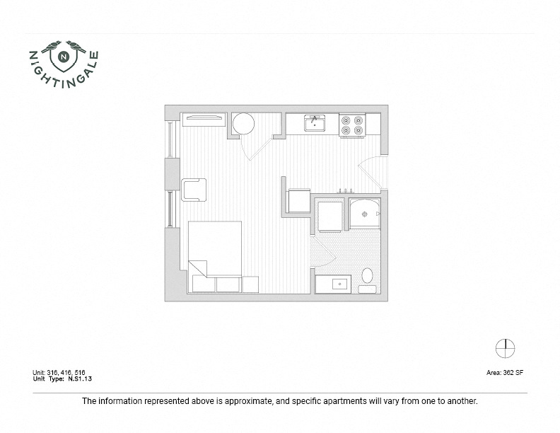 Apartment Model: Nightingale - Vivian ThomasCall For RatesStudio, 1 Bath, 414 sq ftUnavailable![]()