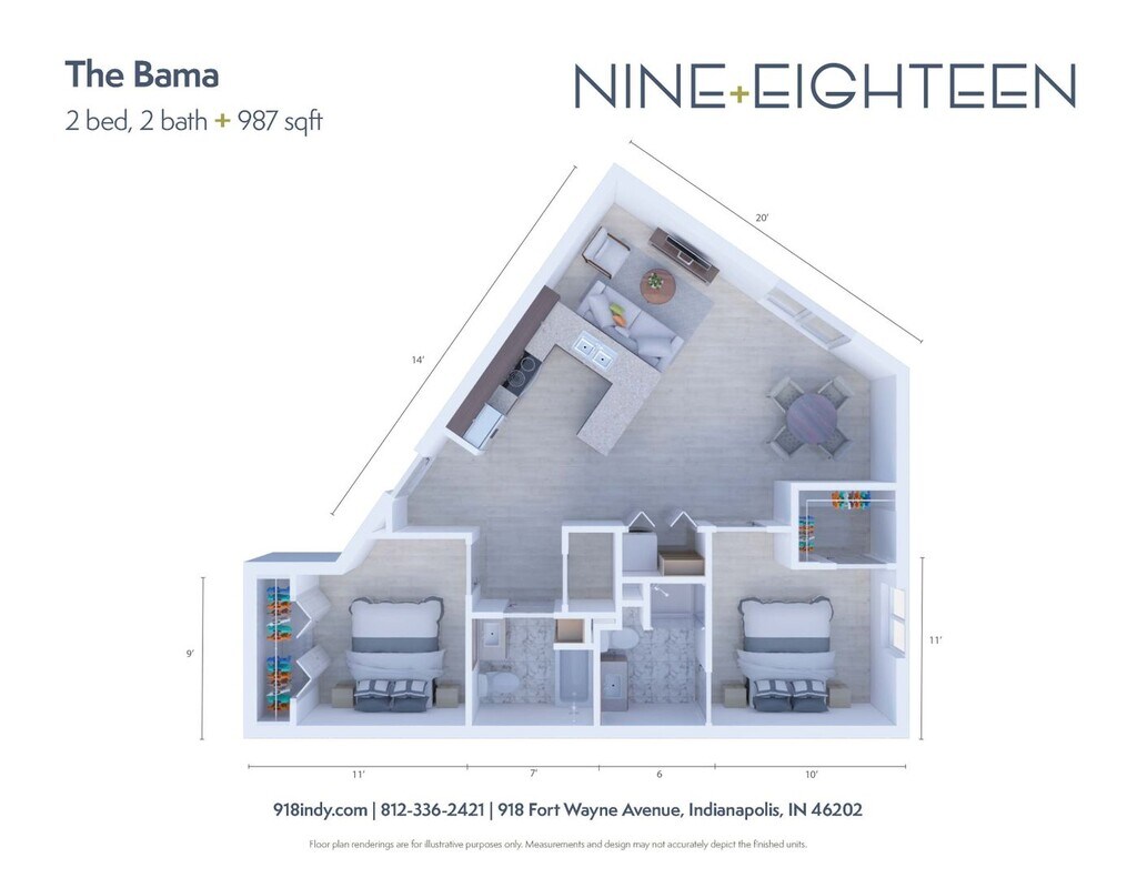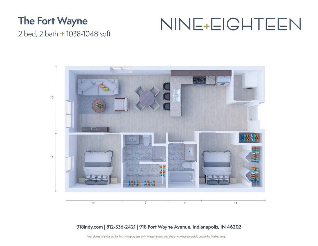 Nine+Eighteen is the new “modern-nostalgic” centerpiece of the St. Joseph Historic Neighborhood in Downtown Indianapolis. Located at 918 Fort Wayne Avenue, our 1-, 2-, and 3-bedroom apartment community is nestled in one of the city’s most desirable neighborhoods rich with tradition, diversity, and history. Designed with a nod to our neighborhood’s row houses, ornate cottages, and converted warehouses, Nine+Eighteen welcomes residents who appreciate high quality living and urban walkability within the comfort of a close-knit and quiet neighborhood.