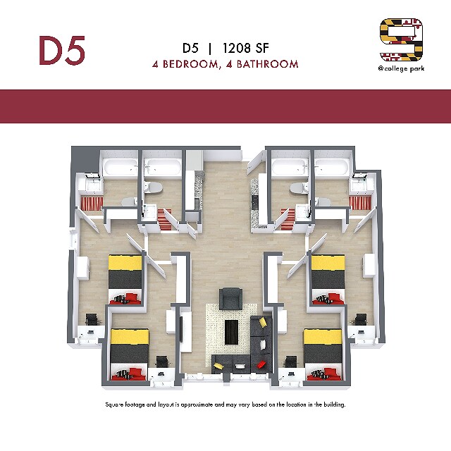 D5 - Floorplan 1 Apartment Unit: PrivateApartment Model: D5$9094 Bedroom, 4 Bath, sq ftAvailable August 18, 2026