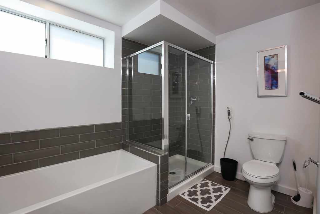 - up shower in guest bath and Shower tub combo in select units or tub and separate shower
