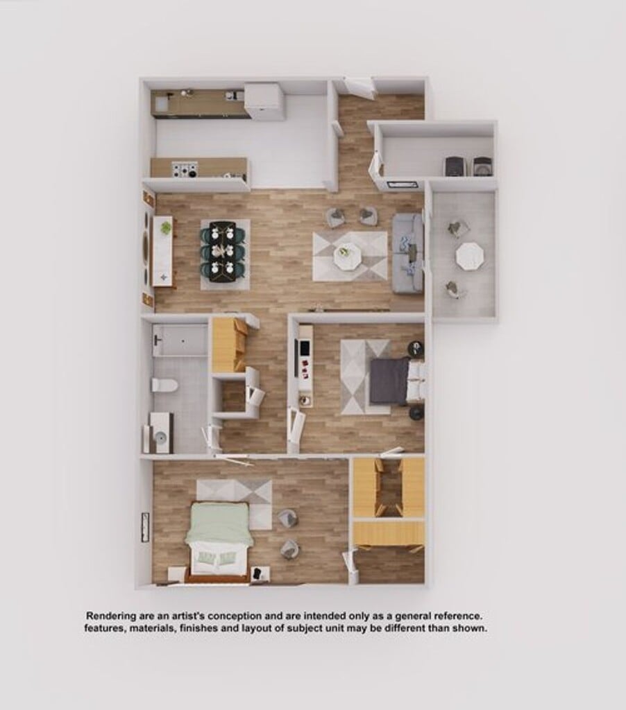 Apartment Model: 3 BED 2 BATH - APARTMENTFrom $1,4403 Bedroom, 2 Bath, 1275 sq ftAvailable Now![]()