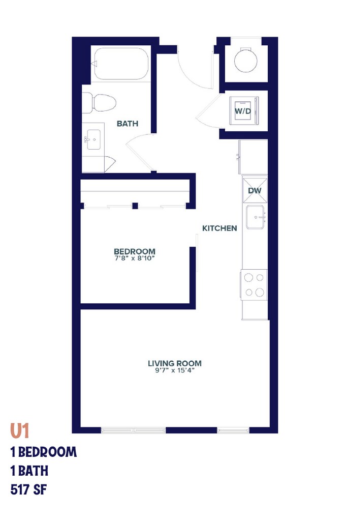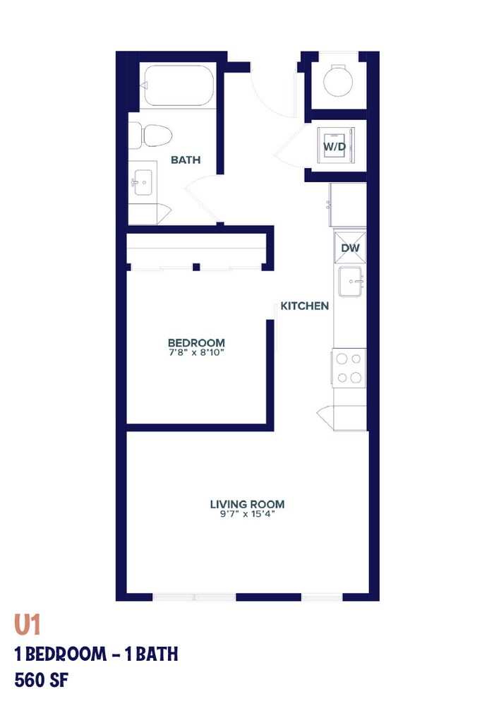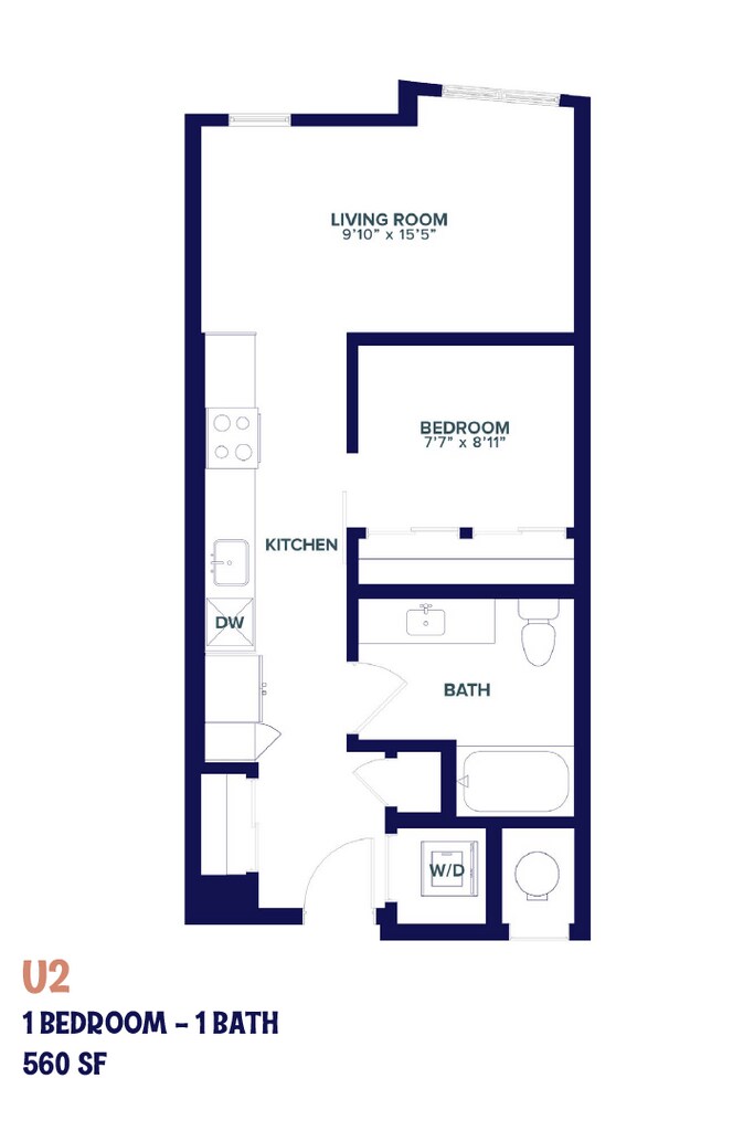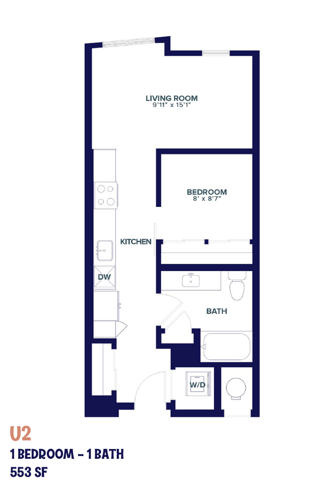 Urban One Bedroom U4 - Floorplan 1 Apartment Unit: 2-615Apartment Model: Urban One Bedroom U4$1,6101 Bedroom, 1 Bath, 584 sq ftAvailable Now![]()
