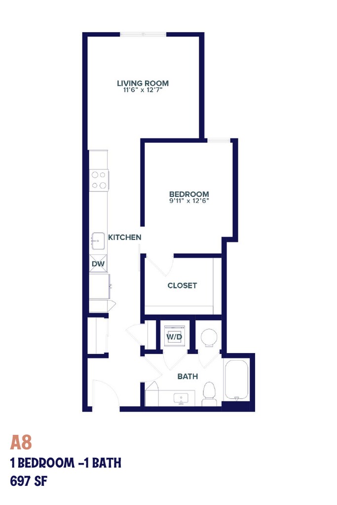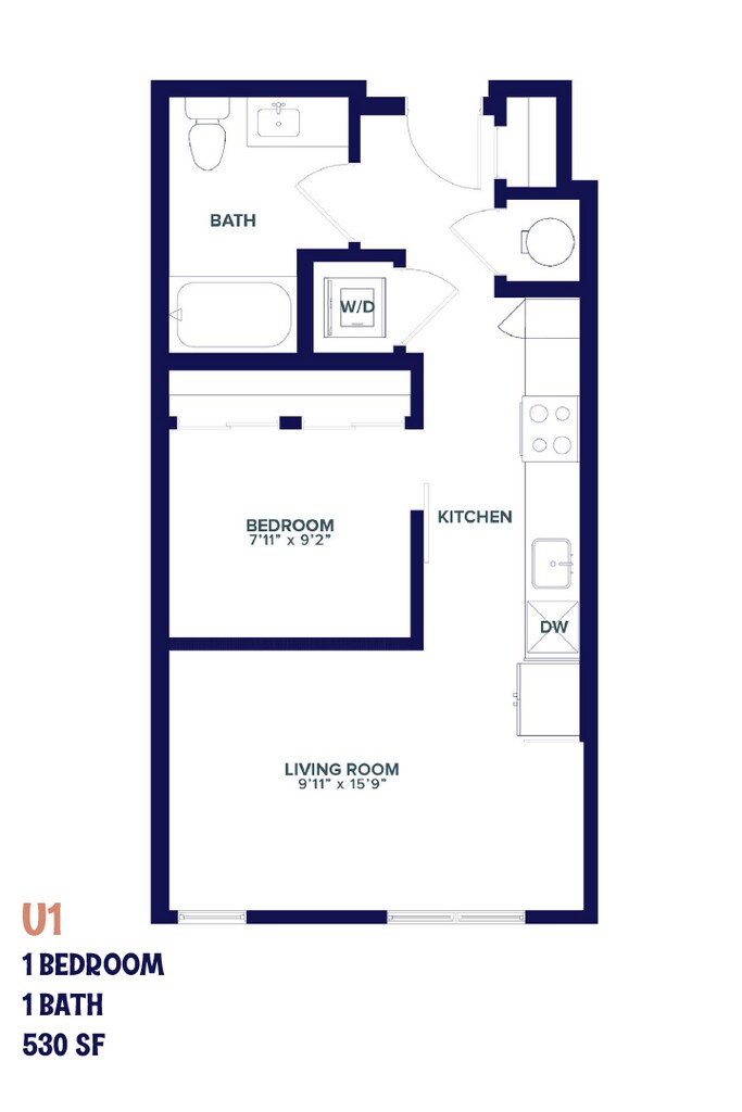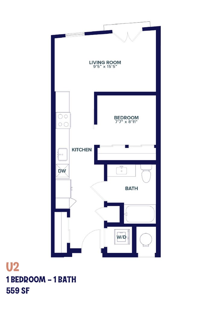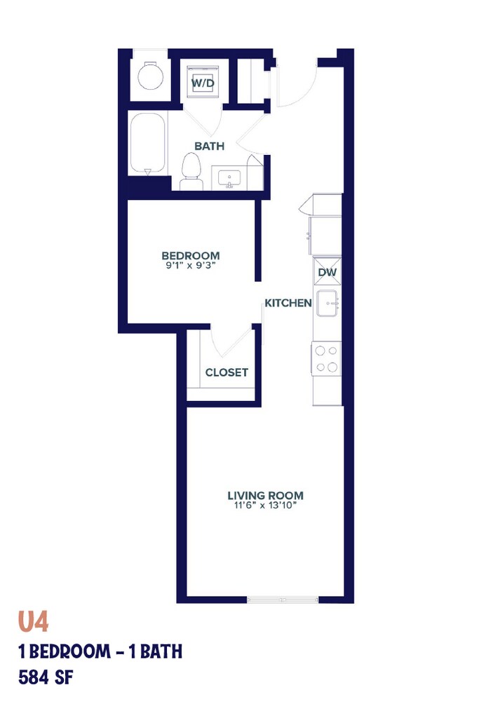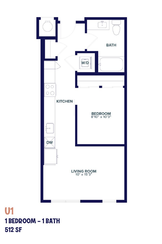 Urban One Bedroom U4 - Floorplan 1 Apartment Unit: 2-615Apartment Model: Urban One Bedroom U4$1,6101 Bedroom, 1 Bath, 584 sq ftAvailable Now![]()