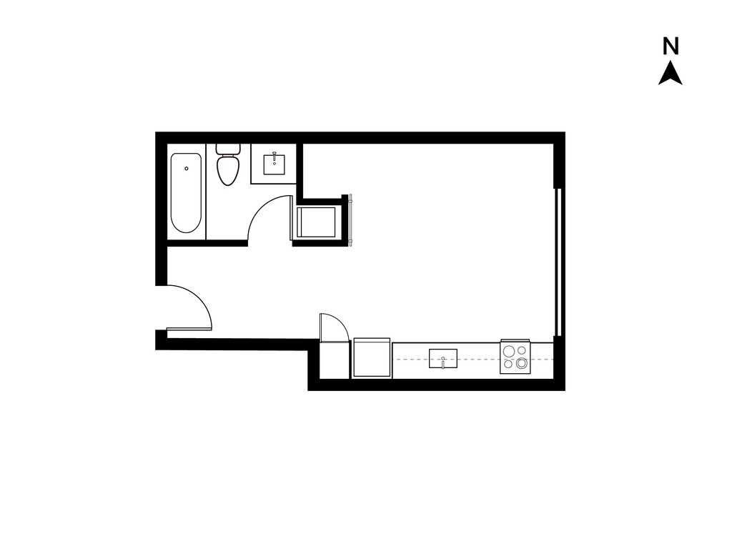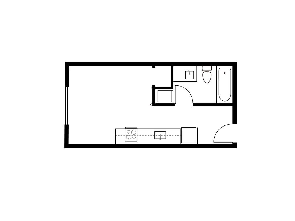 S2 - Floorplan 1 Apartment Unit: 212Apartment Model: S2$1,640Studio, 1 Bath, 350 sq ftAvailable NowFloorplan S1