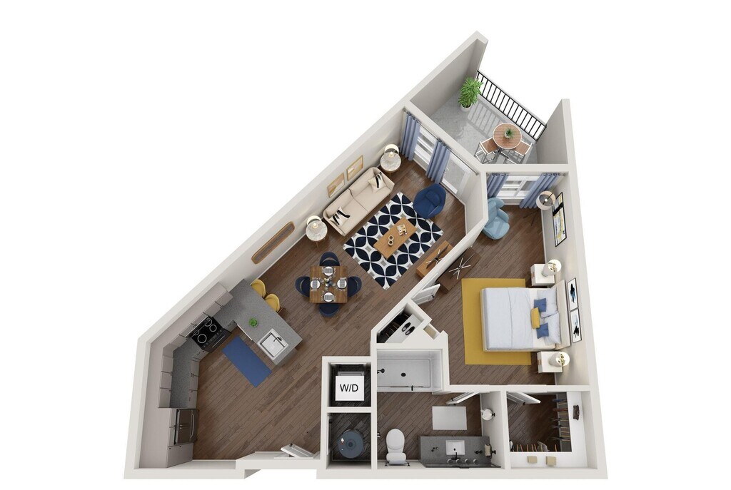 Apartment Model: 1D-M$1,6861 Bedroom, 1 Bath, 723-736 sq ftAvailable NowFloor plans are artist's rendering. All dimensions are approximate. Actual product and specifications may vary in dimension or detail. Not all features are available in every rental home. Prices and availability are subject to change. Base rent is based on monthly frequency. Additional fees may apply, such as but not limited to package delivery, trash, water, amenities, etc. Deposits vary. Please see a representative for details.