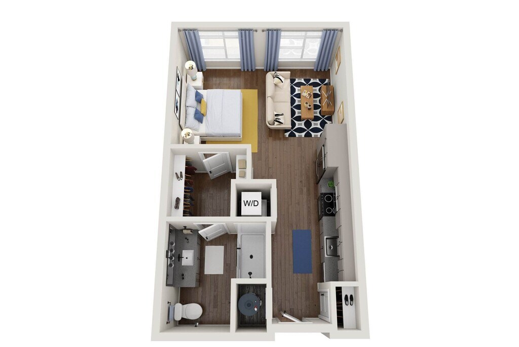 S1 - Floorplan 1 Apartment Unit: W-B15Apartment Model: S1$1,261Studio, 1 Bath, 504 sq ftAvailable NowFloorplan S3