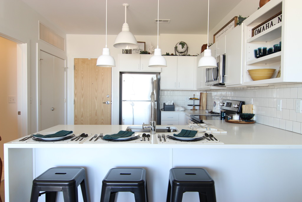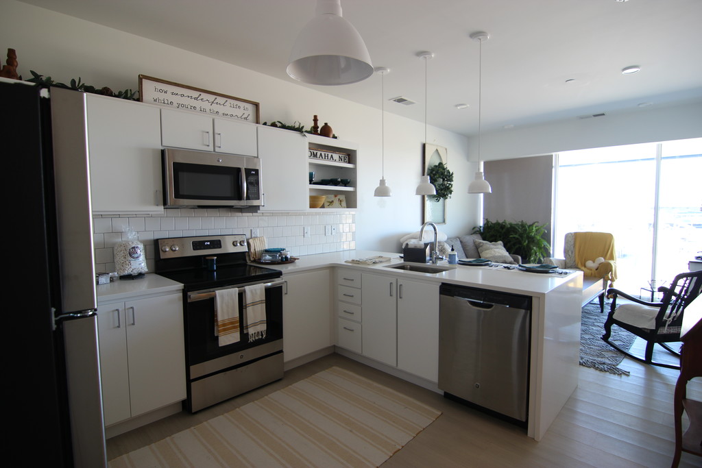 Luxury apartment building located in North Downtown within walking distance of CHI Health Center and TD Ameritrade park. We offer studio, 1-bed, and 2-bed units. Community Room "On Deck" equipped with TV, couch, and outdoor seating on a balcony that overlooks Charles Schwab Field. Amenities include under-building parking, elevator, fitness center, and trash / recycle chutes.