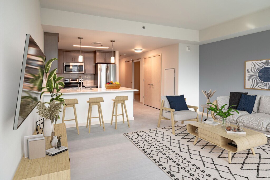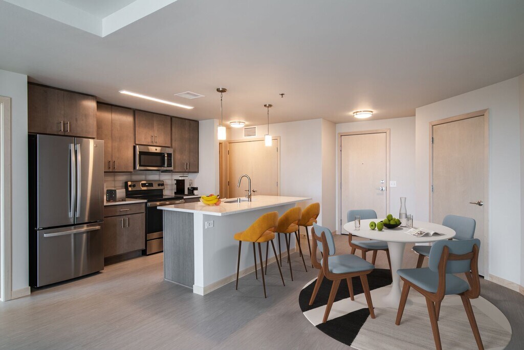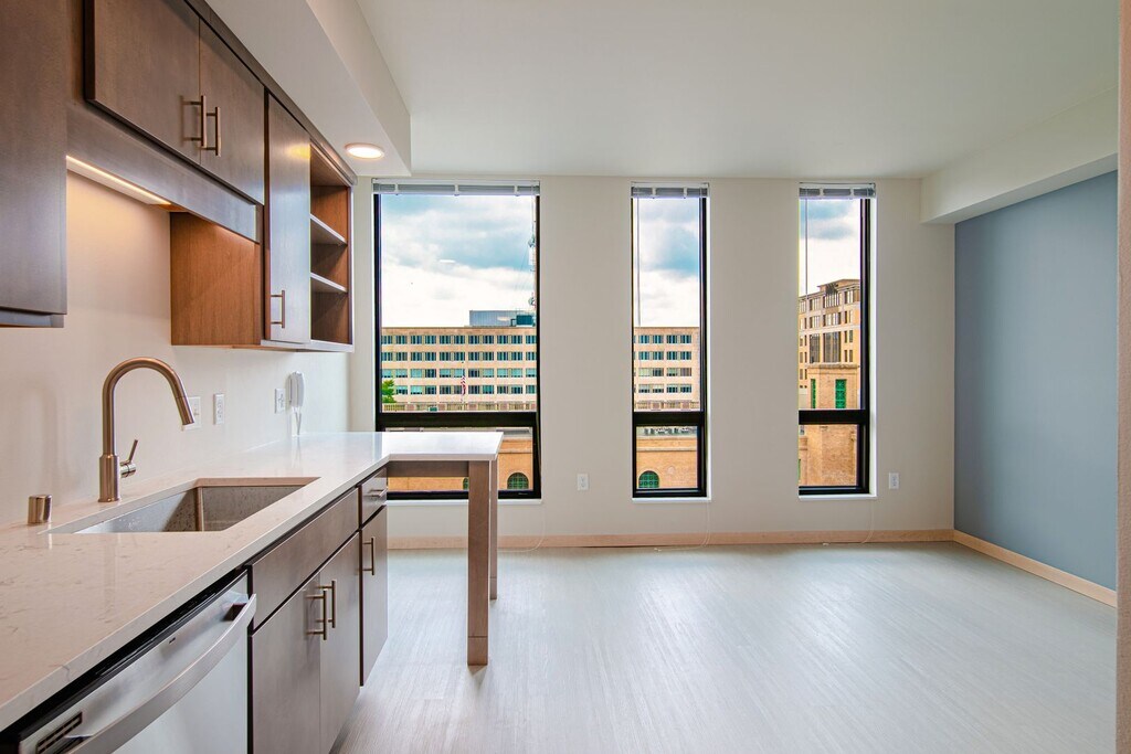 Studio Income Restricted - 60% Level Moderate-income and student status restrictions apply. Maximum income is determined by household size and is based on gross annual (pre-tax) income. 1 Person - less than $54,540 2 People - less than $62,340 Unit cannot be entirely occupied by full time students. Some exemptions apply - contact us for details. Nickel Floor Plan - Northeast Facing Apartment Features Include - Floor to Ceiling Windows - In-Unit Washer and Dryer - Quartz Countertops - Stainless Steel Appliances - USB Outlets - Vinyl Plank Flooring Throughout - Window Coverings Tenant Liability Insurance Required. (Minimum coverage of 100K) (Pricing, inclusions, and eligibility subject to change)
