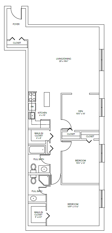 1 Bed, 1 Bath, 640-660 sq ftAvailable NowModel Gallery