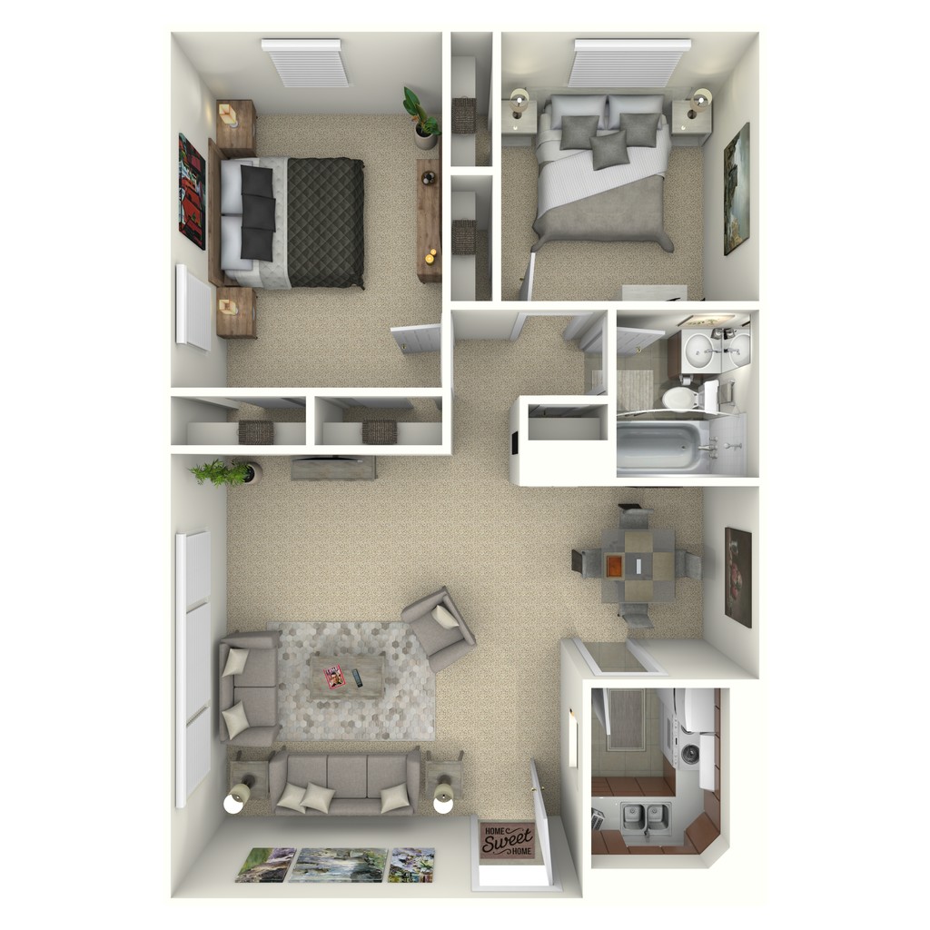 2 Beds, 1 Bath, 700 sq ftModel Gallery