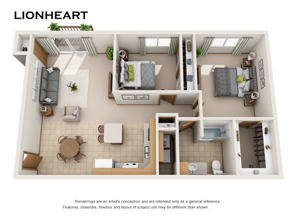 Apartment Model: Lionheart$9952 Bedroom, 1 Bath, 1050 sq ftUnavailable![]()
