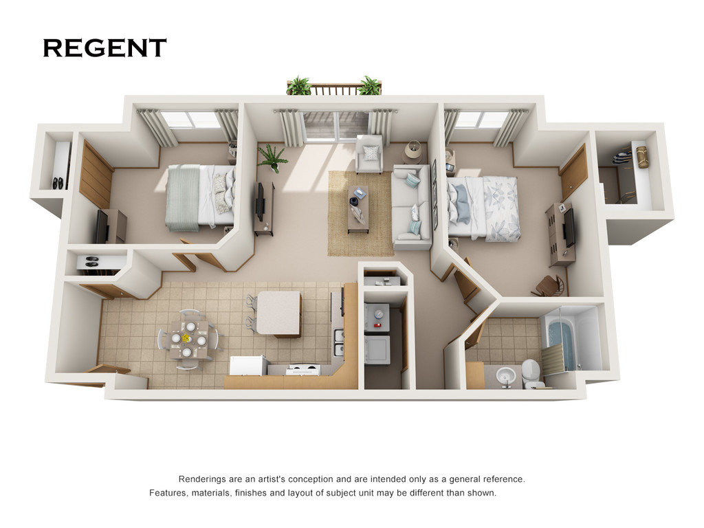Apartment Model: Regent$9952 Bedroom, 1 Bath, 1050 sq ftUnavailable![]()