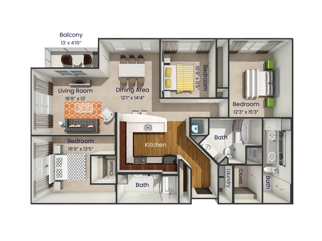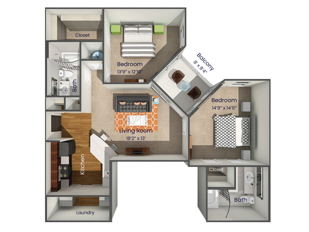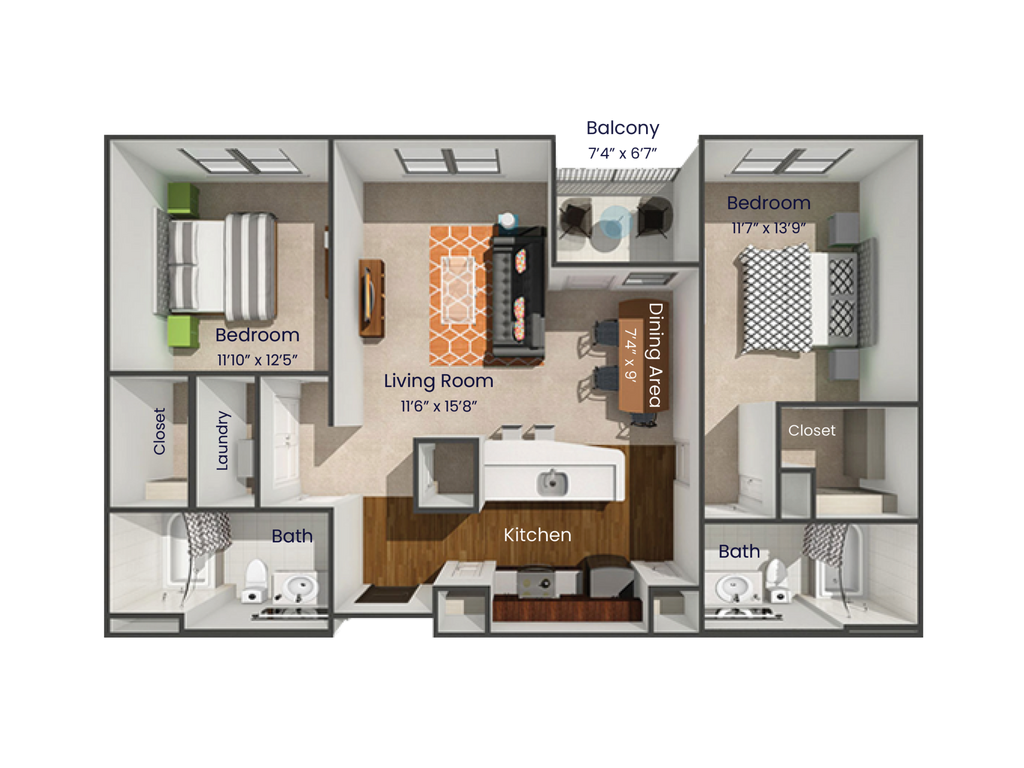 1 Bed, 1 Bath, 669 sq ftAvailable NowModel Gallery