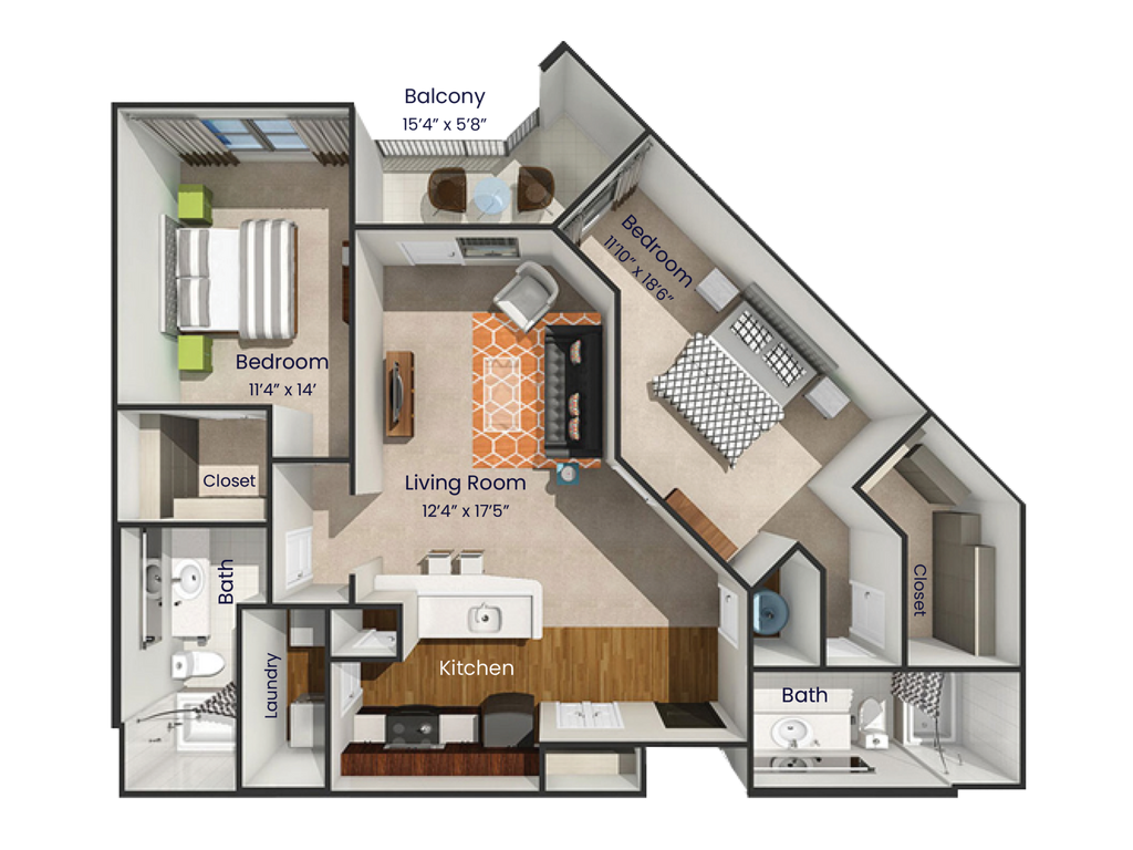 Apartment Model: A2From $1,8541 Bedroom, 1 Bath, 669 sq ftAvailable November 6, 2025![]()