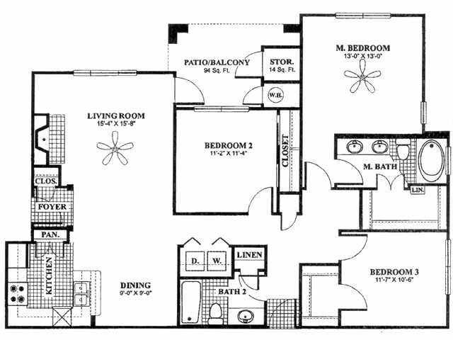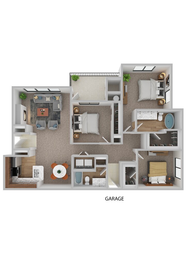 - Spacious one, two and three bedroom floorplans