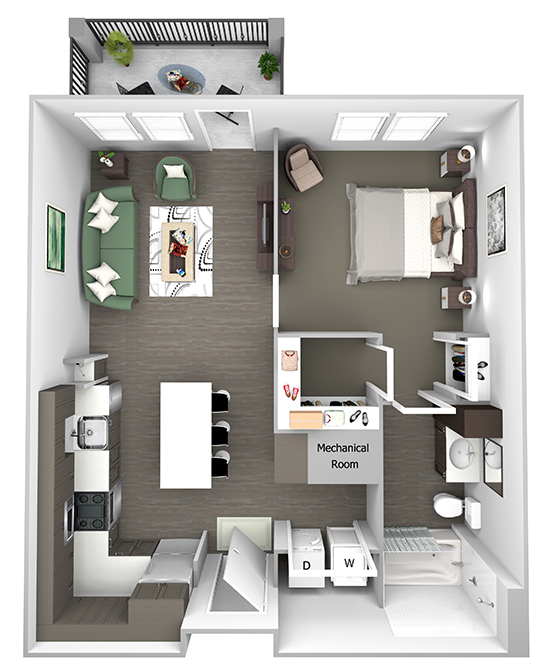 1 Bed, 1 Bath, 578 sq ftAvailable NowModel Gallery
