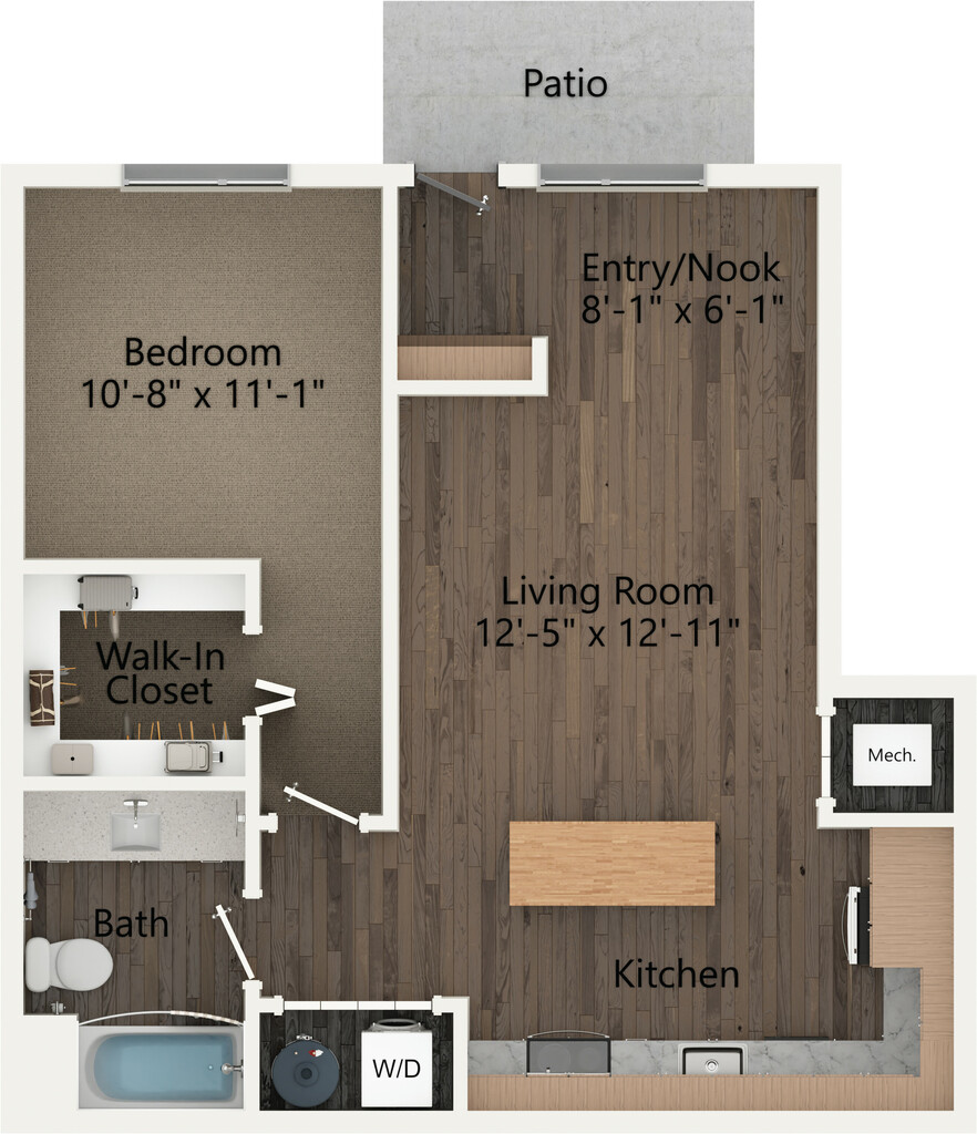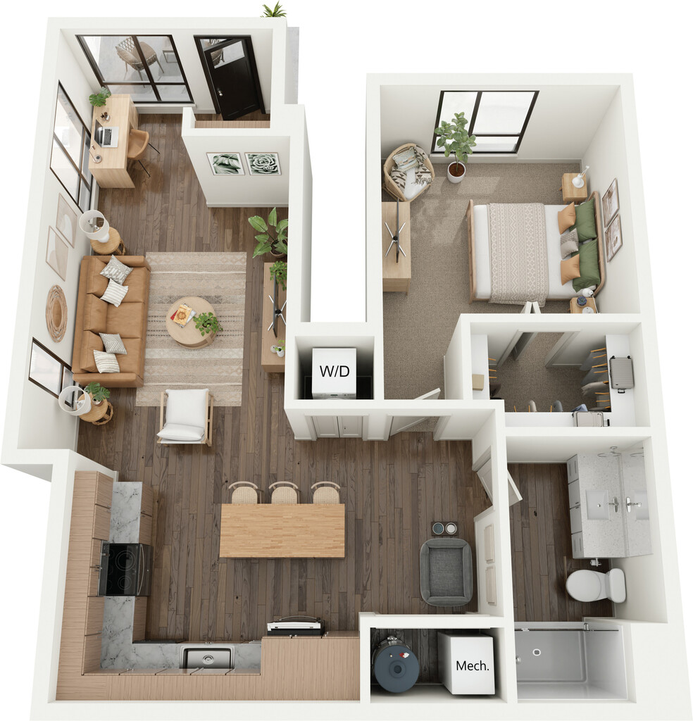Apartment Model: A1From $1,6151 Bedroom, 1 Bath, 740 sq ftAvailable Now![]()