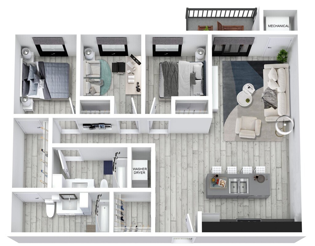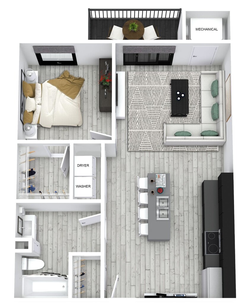 1 Bed, 1 Bath, 704-737 sq ftTotal Monthly PriceAvailable NowModel Gallery