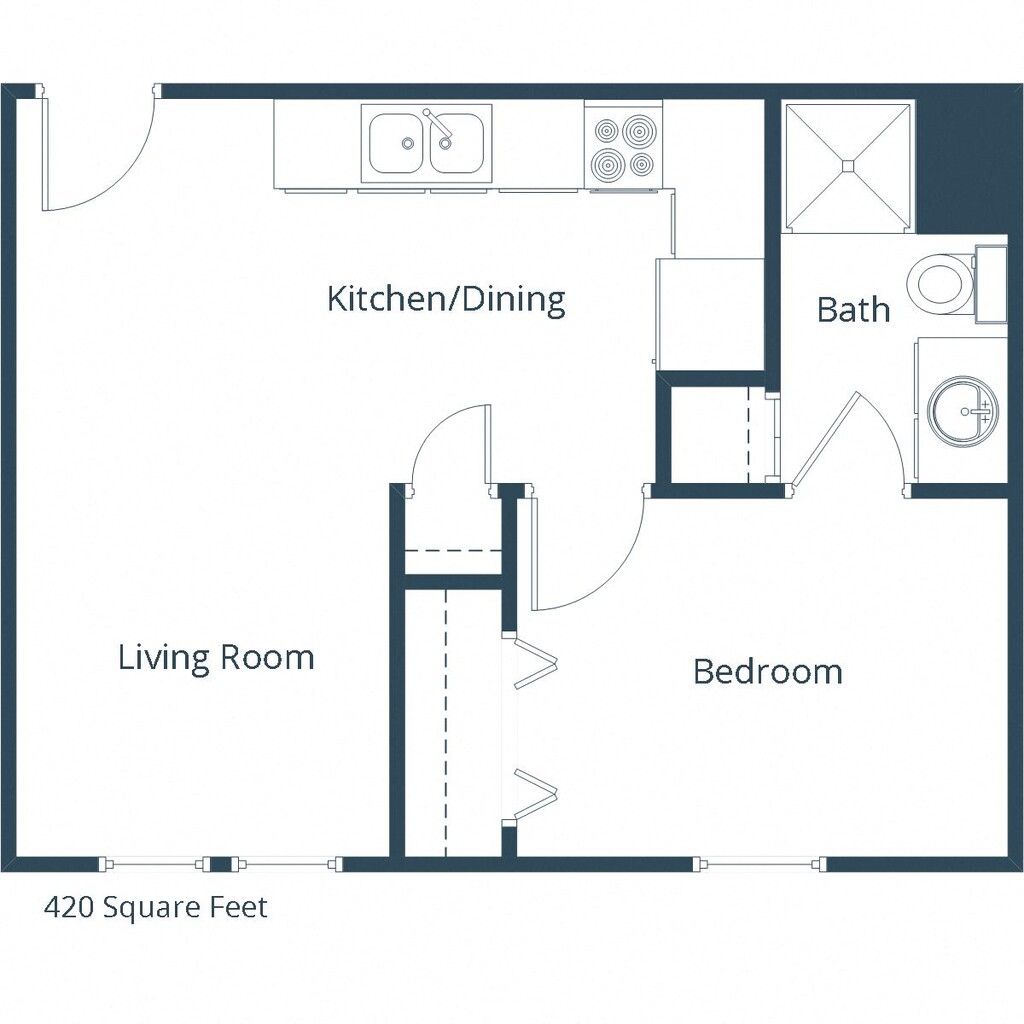 1 Bed, 1 Bath, 420 sq ftModel Gallery