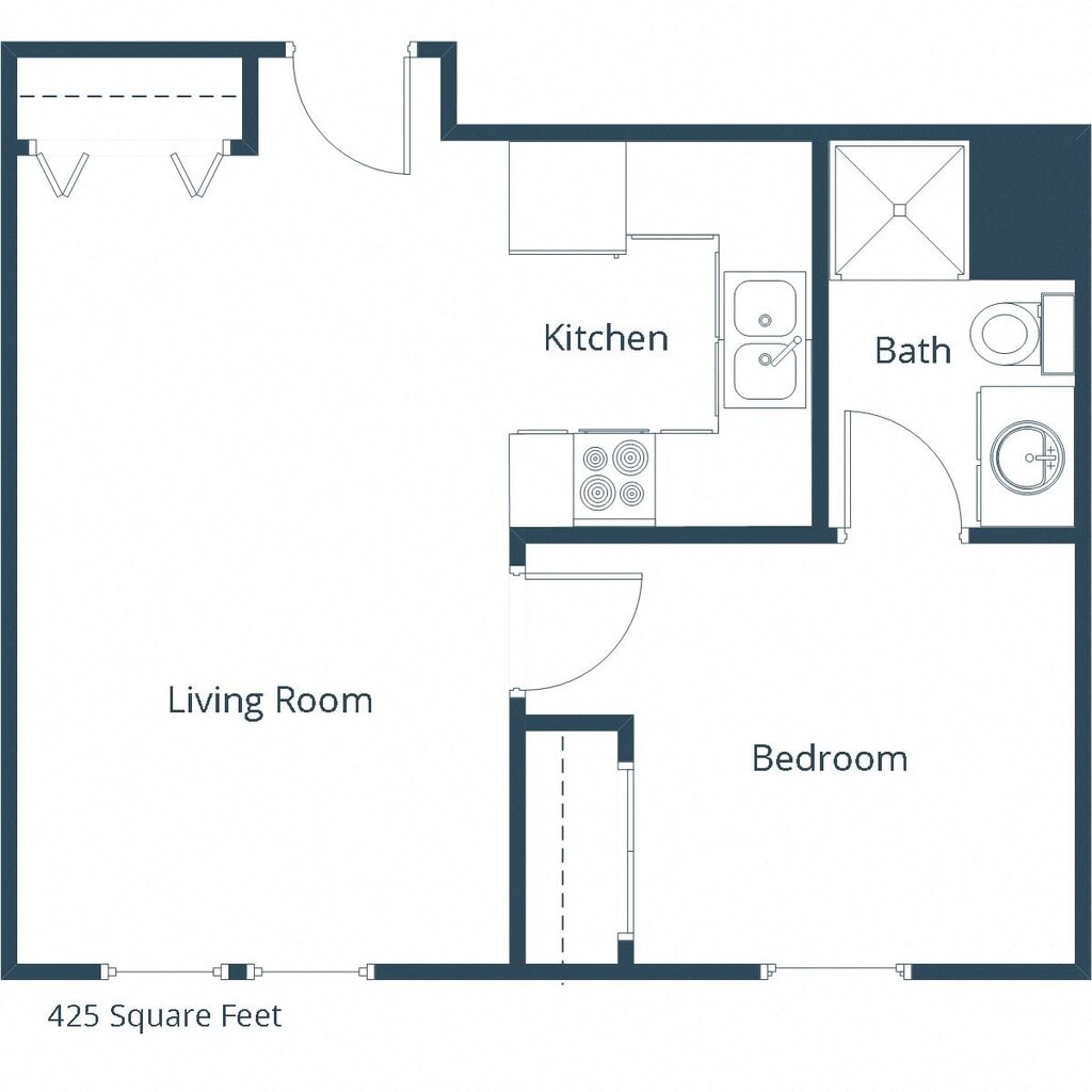 1 Bed, 1 Bath, 425 sq ftLargest 1 BedroomThis is the largest 1 Bedroom at this PropertyModel Gallery