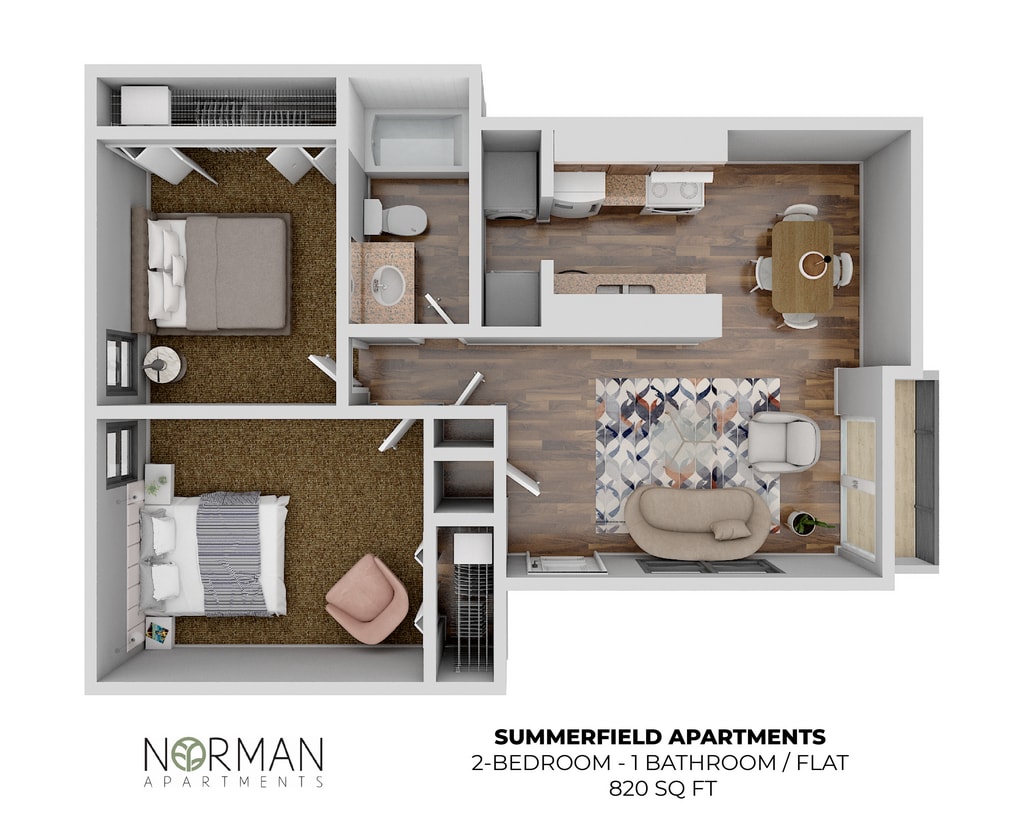Norman Apartments offers 1 to 4 Bedroom apartments starting from $769 and having 550–1,500 sq ft. Here is the current pricing and availability: