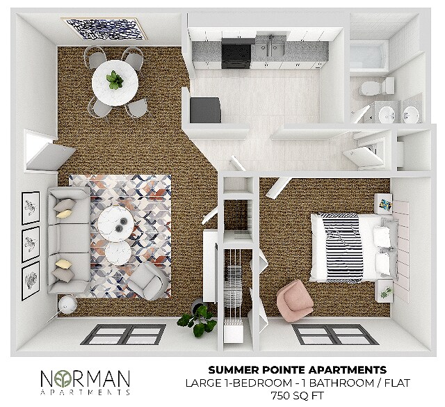 Apartment Model: Large 1-bed flat at Summer PointeFrom $9231 Bedroom, 1 Bath, 750 sq ftAvailable Now![]()
