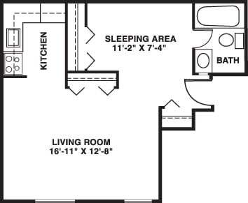 Studio - Floorplan 8 Apartment Unit: 2223-1DApartment Model: Studio$873Studio, 1 Bath, 483 sq ftAvailable Now1 Bedroom