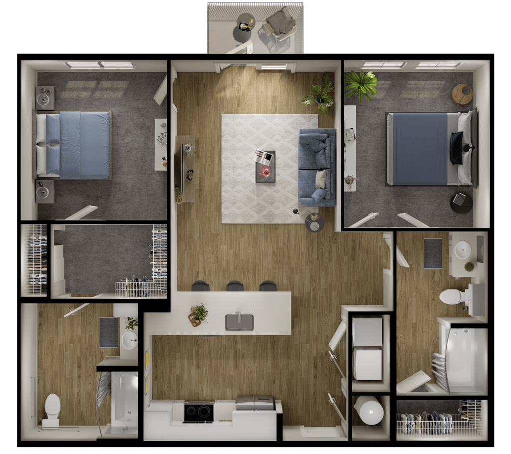 2 Beds, 2 Baths, 1172 sq ftAvailable NowModel Gallery