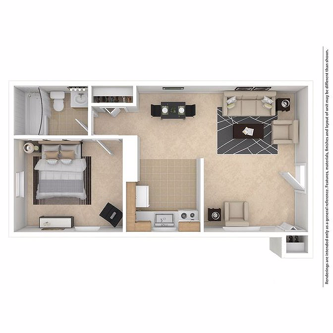 1 Bed, 1 Bath, 585 sq ftAvailable NowModel Gallery