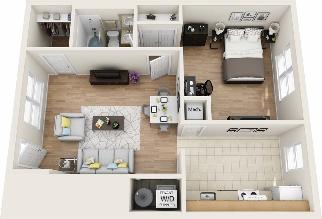 Apartment Model: 1 Bedroom1 Bedroom, 1 Bath, 725-801 sq ftUnavailable![]() - 1 Bedroom - Floorplan 1