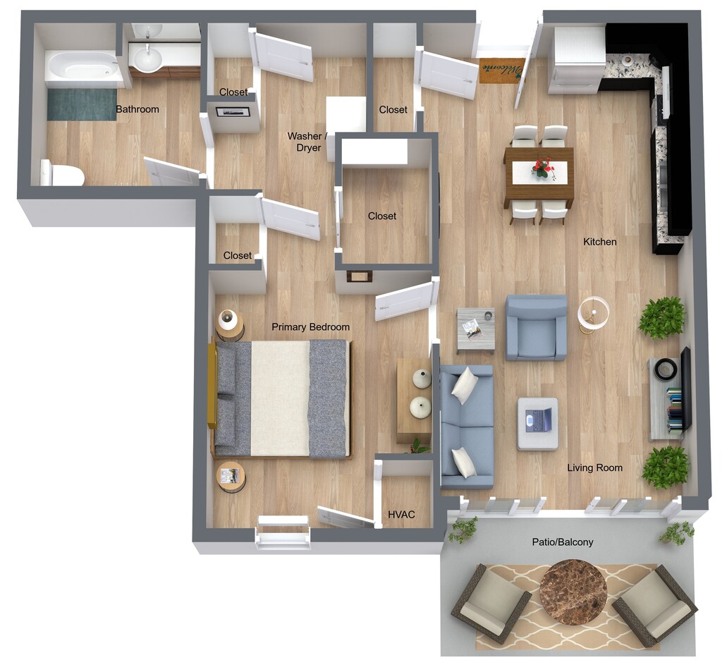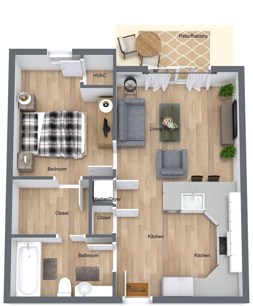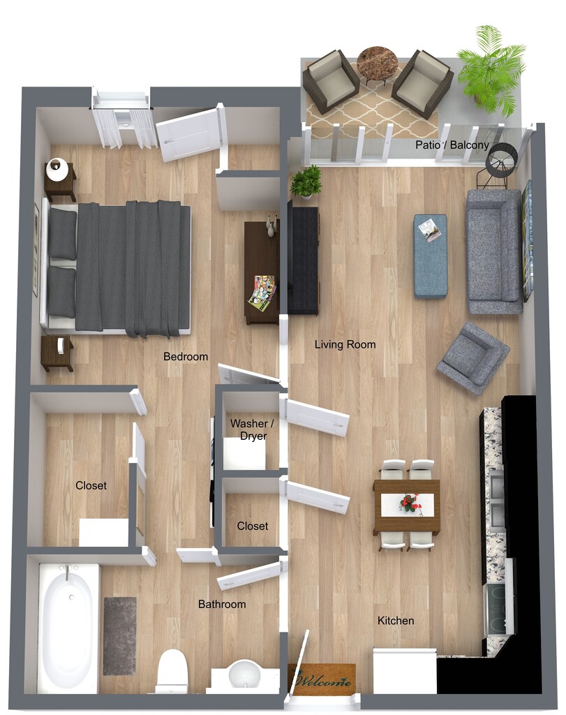 Apartment Model: A1From $1,4001 Bedroom, 1 Bath, 678 sq ftAvailable November 25, 2025FloorplansPhotos![]()