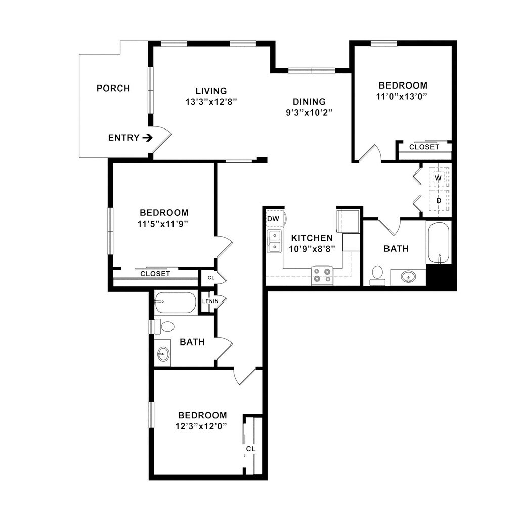 Apartment Model: The Sierra Nevada3 Bedroom, 2 Bath, 1165-1327 sq ftUnavailable![]()