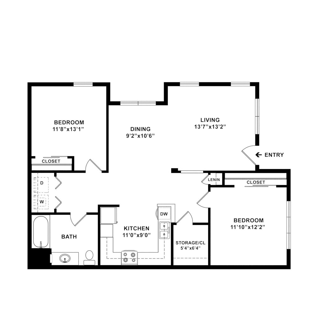 Apartment Model: The Bidwell2 Bedroom, 1 Bath, 939-1016 sq ftUnavailable![]()