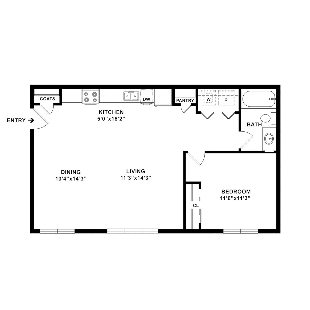 Apartment Model: The Oak1 Bedroom, 1 Bath, 695-800 sq ftUnavailable![]()