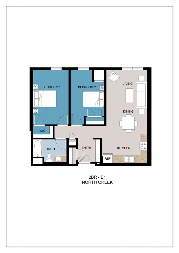 North Creek offers 1 to 2 Bedroom apartments starting from $1,200 and having 558–844 sq ft. Here is the current pricing and availability: