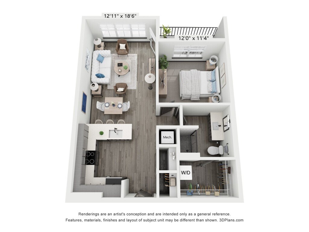 1 Bed, 1 Bath, 1117 sq ftLargest 1 BedroomThis is the largest 1 Bedroom at this PropertyModel Gallery