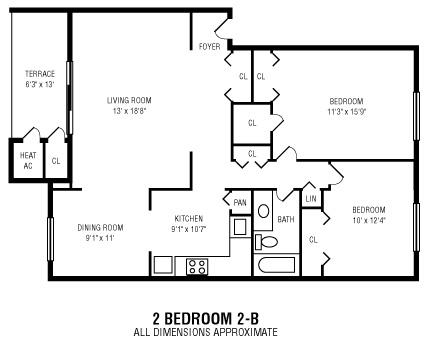2 Bed 1 Bath - Floorplan 1 ![]()