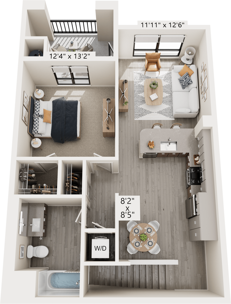 1 Bed, 1.5 Baths, 1640 sq ftAvailable NowLargest 1 BedroomThis is the largest 1 Bedroom at this PropertyModel Gallery