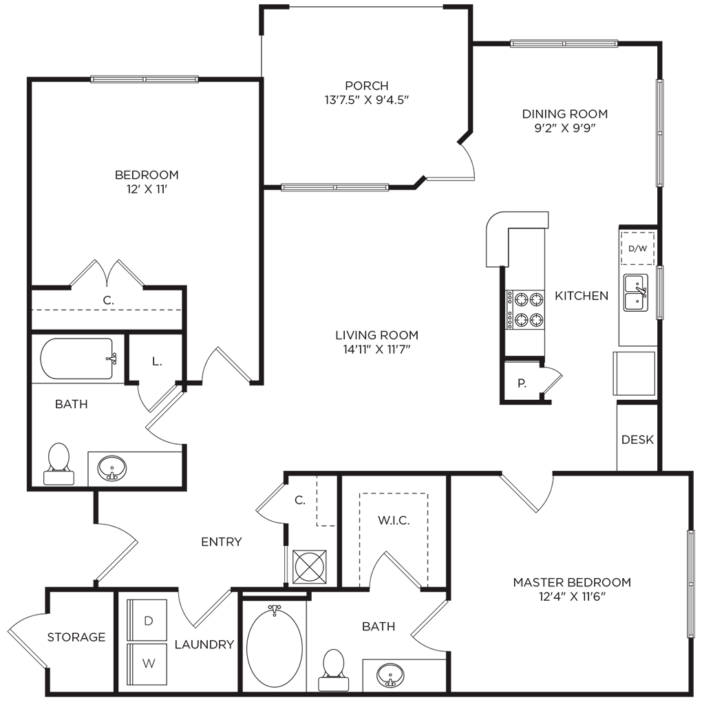 2 Beds, 2 Baths, 1101 sq ftAvailable NowModel Gallery