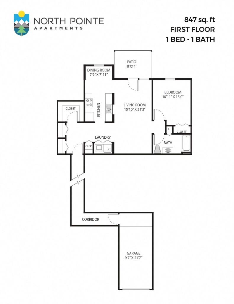 Apartment Model: 1 Bed, 1 Bath - 847 sq ftFrom $1,3701 Bedroom, 1 Bath, 847 sq ftUnavailable1 Bed, 1 Bath - 847 sq ft - Floorplan 1 2 Bed, 1 Bath - 887 sq ft